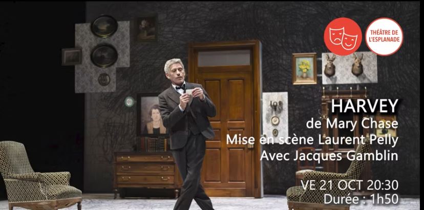 Vendredi 21 octobre à 20h30 Harvey, Mise en scène Laurent Pelly avec Jacques Gamblin, grande Scène, théâtre de l’Esplanade. Durée 1h50, théâtre. Une farce désopilante et sombre signée Laurent Pelly. Tarif plein 26 euros, réduit 16 euros. Service babysitting.