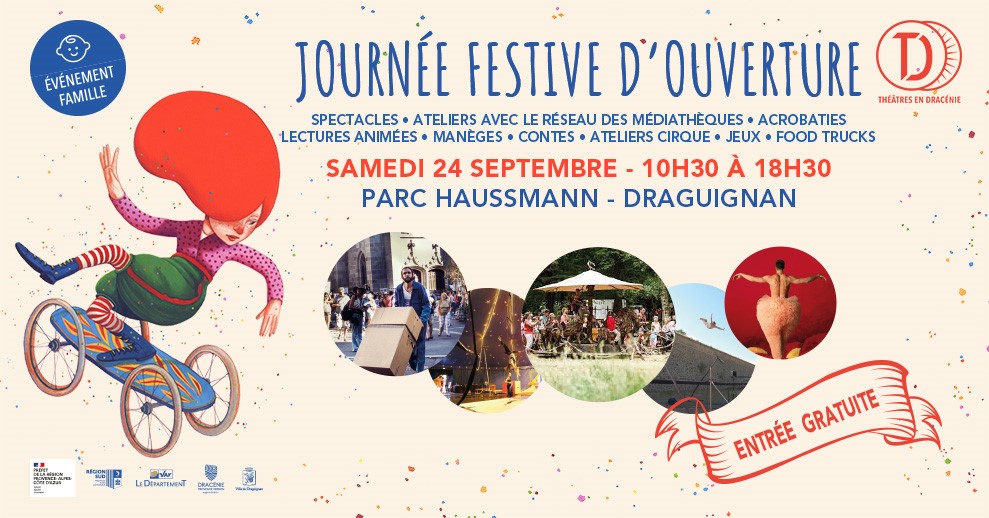 Toute la journée du samedi 24 septembre, le Parc Haussmann à Draguignan sera transformé en « scène à ciel ouverte ». Entre 10h30 et 18h30, sur entrée libre et gratuite, une série de festivités, spectacles, animations, manèges, ateliers… seront proposées au public… et aux enfants.