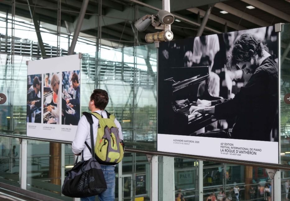 Au fond le succès de ce Festival c’est la convergence de trois idées géniales : une volonté politique et de solides subventions, la construction d’une vraie salle de concert en plein air dans un lieu approprié, la conque sonore démontable œuvre de l’acousticien alsacien Othon Schneider, un programmateur intelligent avec un bon carnet d’adresses et surtout une bonne com avec des initiatives médiatiques. C’est le cas depuis le début de l’aventure. Chaque année apporte sa nouveauté. Cette année le Festival International de Piano de La Roque d’Anthéron s’expose en Gare d’Aix-en-Provence TGV jusqu’au 20 août ! En partenariat avec SNCF Gares et Connexions, des photographies XXL des précédentes éditions du Festival sont exposées en Gare. Pour accompagner cette exposition et célébrer les 10 ans des pianos en gare, René Martin, a proposé une sélection de jeunes artistes du Conservatoire de Paris qui se sont produits le vendredi 1er juillet en Gare d’Aix-en-Provence. Il fallait y penser.