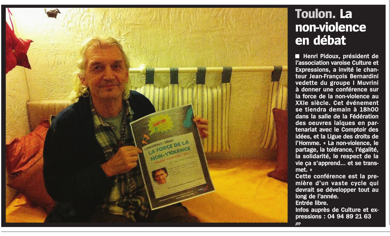 Opéravenir > Informations > Presse et critiques parutions dans TV83 > Henri Pidoux : la non violence en débat