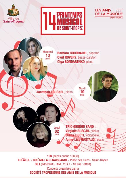 Mardi 10 mai Jonathan Fournel récital de piano 19h (accès public 18h30) au Théâtre la Renaissance place des Lices organisé par a Société tropézienne des amis de la musique 30 (adhérent STAM : 20 / – 18 ans : offert)