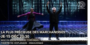 Jeudi 15 décembre 20h30 Théâtre de l’Esplanade. La plus précieuse des marchandises Texte Jean-Claude Grumberg. Adaptation et mise en scène Charles Tordjman Avec Eugénie Anselin et Philippe Fretun. Et la participation de Julie Pilod.