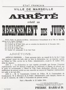 L’opération anti-marché noir lancée par Vichy entre la fin avril et juillet 1941 se solde globalement dans les Bouches-du-Rhône, le Var et les Alpes-Maritimes par 61 internements et 632 assignations à résidence de juifs étrangers, elle ne se traduit dans le Var que par 18 assignations. Cette opération, lancée à fins d’annonce, pour satisfaire ce que l’on pense être le sentiment populaire, cherche à ancrer l’idée que les étrangers en général et les étrangers juifs en particulier constituent des éléments corrupteurs par nature. Il faut justifier l’antisémitisme devenu une réalité officielle. Il faut donc donner de la consistance à la catégorie bouc émissaire « juif », ainsi offerte en pâture à l’opinion. Mais ce n’est qu’une des catégories « dangereuses », comme les communistes, les étrangers ou les délinquants de droit commun. Malheur à celui qui est à la fois juif, communiste, franc maçon, homosexuel, étranger…
