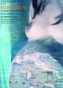 « Éclaboussure » est l’aboutissement de la pièce embarquée « Une goutte à la mer » écrite à bord de l’Aquarius (premier navire de sauvetage de SOS Méditerranée). Elle puise dans ses rencontres avec les sauveteurs, les solidaires et les exilés, le propos d’un regard à hauteur d’homme. Après plusieurs années passées sur la mer Méditerranée à naviguer, à rencontrer, à débattre, à faire parler, à jeter des bouteilles à la mer, des messages écrits par des passants, des plaisanciers, des marins, des solidaires, des sauveteurs, des artistes, des enfants, des réfugiés, des migrants, des exilés, Mandine Guillaume, débarque sur scène pour présenter cette mer cruelle qu’elle a rencontrée et qui a bouleversé sa vie.