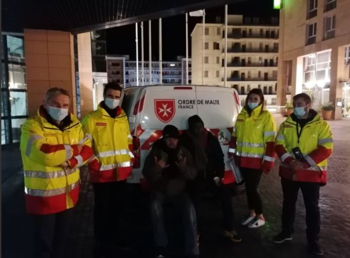 L’Ordre de Malte est là, comme toujours, parmi les autres bénévoles. Une vieille histoire les chevaliers de Malte, ils ont fait régner pendant trois siècles l’ordre chrétien en Méditerranée. Reconstitué en 1830, l’ordre est aujourd’hui devenu une simple organisation caritative. Ce soir un café chaud, quelques paroles, une présence, un témoignage, un engagement, « Ça va aller ? » « Besoin de quelques chose ? » « Une tasse chaude ? » Ils sont là.