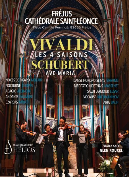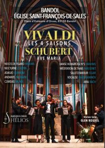Les Quatre Saisons d’Antonio Vivaldi est un ensemble de quatre concerti pour violon, composé en 1723. Il s’agit sans doute de la composition la plus connue de Vivaldi et de l’œuvre musicale la plus jouée dans le monde. C’est un concerto pour violon où le soliste joue accompagné d’un orchestre de chambre. Le contenu de chaque partie est varié et évoque chacune des saisons auquel il se rapporte. A titre d’exemple, l’hiver est ponctué de notes en pizzicato sur les cordes hautes, faisant penser à une pluie glaciale, alors que l’été évoque un orage dans le mouvement final, préparé par le tonnerre qui gronde à plusieurs reprises dans le mouvement. Soliste Glen Rouxel
