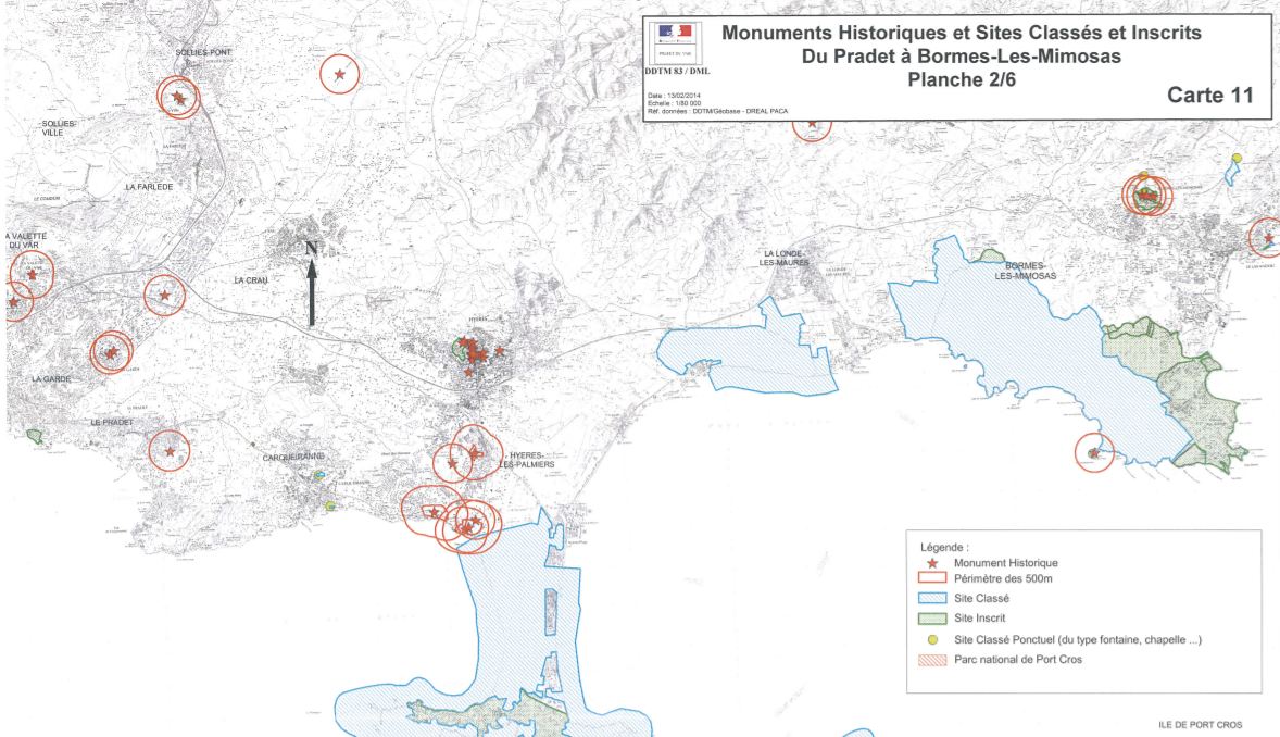 Hyères concentre 34 de ces protections, soit 11 % du total. Fréjus en compte 29, Toulon 18, Saint-Tropez 13, Brignoles 11 et Saint-Maximin 8. 53 communes (35 %) n’en comptent aucune.